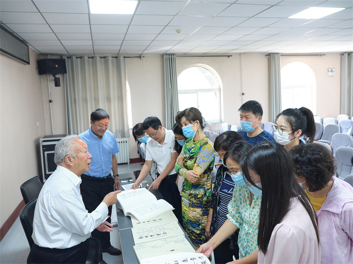 捐赠仪式上,83岁高龄的张先生回顾了在图书馆工作的诸多细节和研习书法的个人经历。勉励图书馆同仁珍惜光阴,不负韶华,在担负起图书馆事业发展的同时,要积极贯彻落实党的方针政策,加强学习中华优秀传统文化,不断提升个人素质和艺术品味。