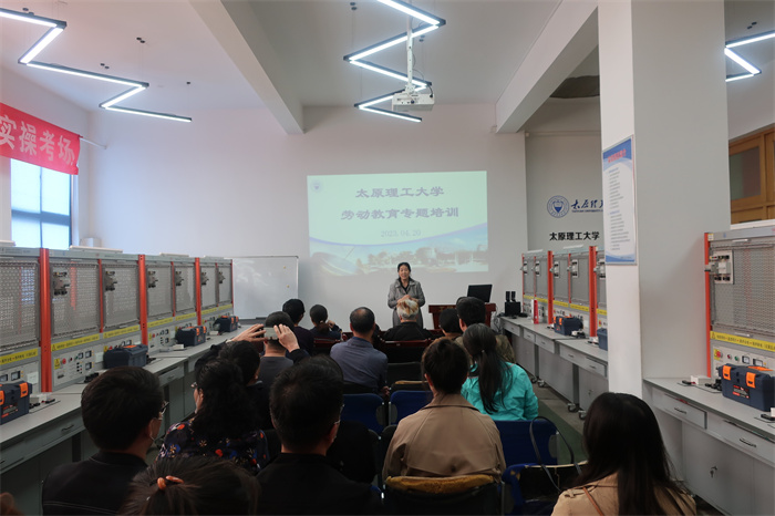 为了落实《中共中央国务院关于全面加强新时代大中小学劳动教育的意见》及《山西省关于全面加强新时代大中小学劳动教育的若干措施》要求,培养教师动手实践能力,在劳动中出汗,从劳动中掌握技能并体验生活的乐趣,在全校弘扬“劳动最光荣、劳动最崇高、劳动最伟大、劳动最美丽”的新时代风尚,4月20日下午,教师发展中心在我校工程训练中心劳动教育和思政教育基地举办劳动教育专题培训,来自我校13个学院的30余名教师参加了活动。