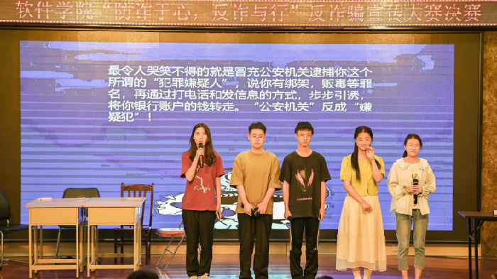 本次大赛的成功举行,切实增强了师生反诈防诈意识和识诈防骗能力,起到了良好的警示教育效果。软件学院将把此次宣传大赛的优秀作品进行持续推广、力求深入人心,为遏制校园诈骗案件发生、筑牢校园防诈的坚固屏障作出努力。