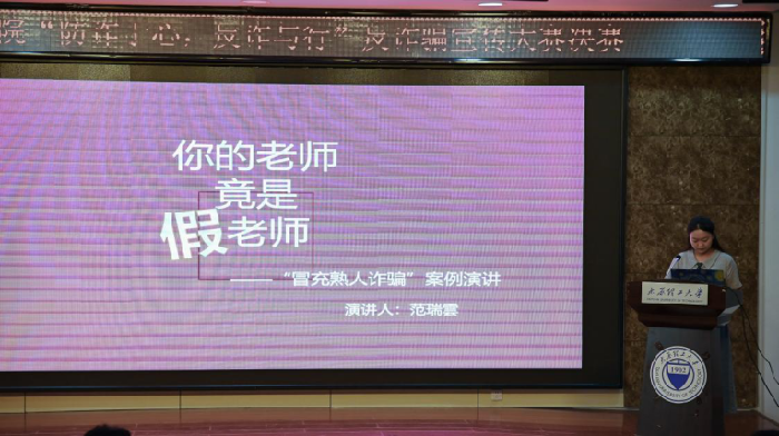 本次大赛聚焦刷单、兼职、冒充客服、买卖游戏装备、勒索等高校高发的诈骗案例和社会关注度较高的中老年人受骗问题,通过演讲、舞台剧、说唱等多种形式进行展演。同学们创意十足的说唱、贴近生活的台词和精彩生动的表演,让在场观众深刻认识到诈骗的严重危害,用实际行动号召大家一起加入防范诈骗的斗争之中。