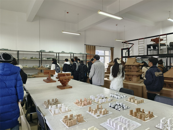 宣讲会结束后,三个专业分三条路线参观了博学馆A座、博学馆G座和思韵楼。同学们在博学馆A座参观了乡村振兴展、毕业作品展、“双十基地”山西古建筑文化培养教育中心“盛夏光年”文创展,在博学馆G座参观了建筑物理实验室、模型室、资料室,在思韵楼参观了学长学姐的专业教室、安心心理社活动室、课程作业展等。通过对未来学习、实践场景的实地参观,使学生熟悉专业学院和学习场所,了解高年级学习生活,对自己的学习目标有了更清晰地认知。