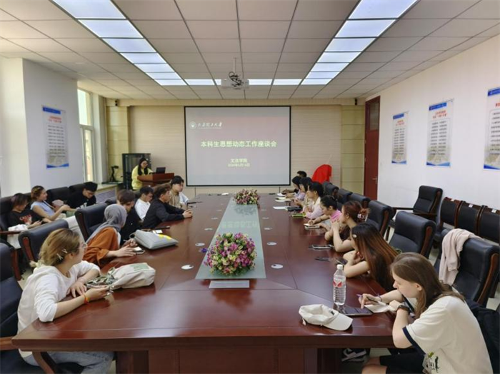 为深入了解来华留学生学习、生活情况,帮助留学生们更好规划未来方向,文法学院于5月14日中午在442会议室召开了本科生思想动态工作交流会暨”天涯若比邻,共话留学情“来华留学生文化交流会,为来华留学生答疑解惑。学院党委副书记杨雪芬、团委书记兼学工办主任周影影、辅导员鲍顺妙、张轩宁及王波、纳兰琪等20位来自学院不同年级的留学生代表参加会议,座谈会由王思仪主持。