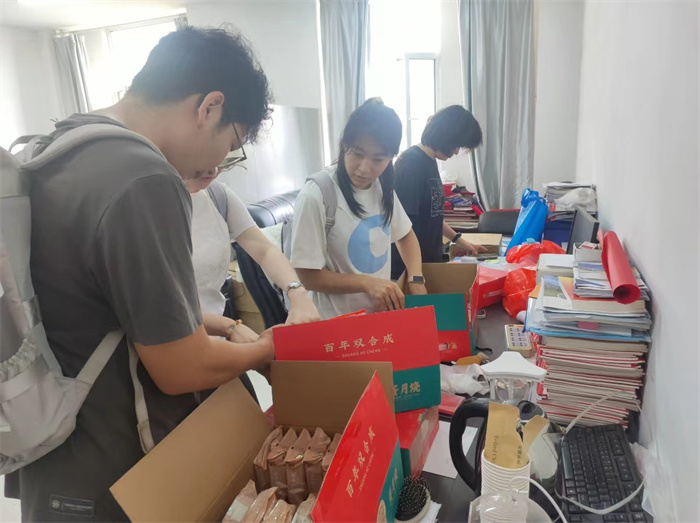 学院为全体学生精心准备了月饼、苹果、酸奶等慰问品,表达了学院“大家庭”对同学们的关心关爱,让同学们身处异乡也能感受到来自“家”的温暖。
