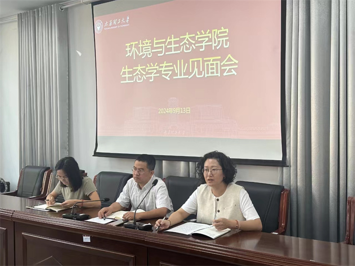 9月13日上午,学院在307会议室举办2023级生态学专业见面会。学院党委书记潘燕春、副书记丁娟和辅导员参加会议。潘燕春欢迎同学们进入到专业学院学习生活,介绍了专业师资力量、教学设施、学科建设等内容,鼓励同学们明确学习目标、树立学科自信,积极实践、刻苦学习。丁娟从自我探索、目标设定、时间管理和习惯养成四个方面入手,对学生的大学四年如何规划进行了指导,并为同学们送去中秋祝福。
