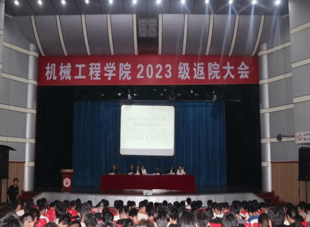 秋风送爽,丹桂飘香。近日,机械工程学院在虎峪校区举办2023级本科生返院大会。校党委常委、副校长,机械工程学院院长王志华、机械工程学院党委书记武佐君、院副书记马丽莉、院副院长赵敬伟、学院各职能处室负责人以及2023级600余名本科生出席活动。活动在庄严的国歌声中拉开序幕。