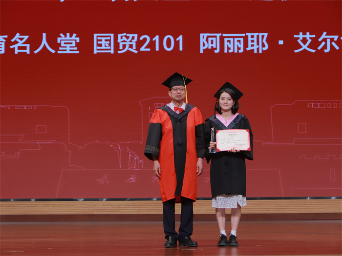 毕业典礼在悠悠校歌声中缓缓落幕。在随后的学位授予仪式中,毕业生们依次登台,栗继祖为毕业生拨穗正冠、颁发学位证书,闫新为毕业生送上毕业纪念品。