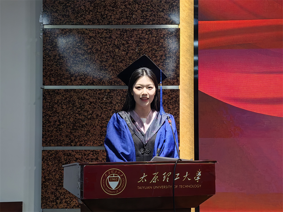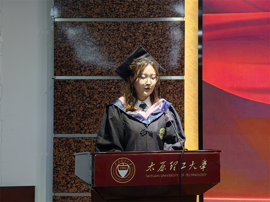 研究生毕业生代表龙皓婕和本科生毕业生代表崔志华分别发言,表达对培养、帮助和关心自己的学院、老师、同学的感激和不舍,也展望未来将时刻牢记“求实、创新”的校训,将跨文化沟通能力、法学专业素养分别转化为服务社会的力量,并号召全体毕业生将小我融入大我,肩负起新时代赋予的责任和担当。