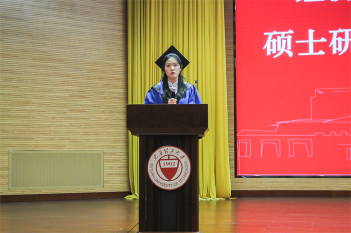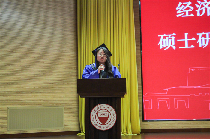 在师生代表发言环节,由毕业生们选出的四位优秀教师代表马家齐、郭淑娟、刘玎琳、何学松分别发言,为同学们送上了毕业祝福和美好祝愿。优秀毕业生代表,2022级MPAcc段园红、2022级MBA解颖分别发言,分享了三年来的成长感悟与毕业感言,表达了对母校的感恩与对未来的憧憬。典礼最后,院党委书记闫新发表讲话,以三句诗向毕业生们提出殷切期望,希望他们以专业学识服务社会,以创新精神开拓未来。