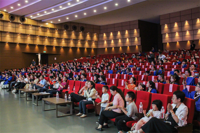 典礼现场精彩纷呈。2022级MBA王凯乐与王文文小朋友带来的街舞《元气跳跳糖》活力四射,展现了青春风采。副院长陈怀超教授宣读了学位授予决定,党委副书记杨振东宣读了优秀毕业生名单,张杰东老师代表学院教师为大家献上深情动人的《爱就一个字》,现场掌声雷动。