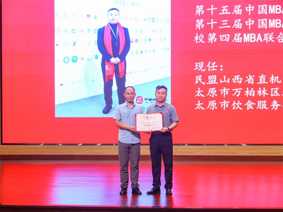 闫新为周健晓先生颁发了MBA校友导师聘书、陈怀超为周健晓先生颁发专硕名人堂证书。