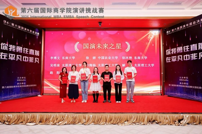 个人奖项方面更是捷报频传,硕果累累:2024级MEM学生胡赛媛斩获“银曰奖”、“最具风采选手奖”,并获评“高层次管理人才公众表达水平证书(一级)”;2024级MBA学生杨鑫、任科阳双双荣获“子曰奖”及“高层次管理人才公众表达水平证书(二级)”;此外,观演队员解颖、许翔杨、路阳、吴明泉也被赛事授予“国演未来之星”称号,充分显示了学院在人才培养和公众表达能力建设上的深厚底蕴。