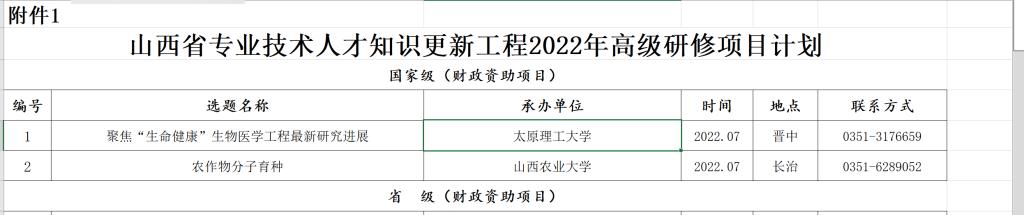 近日,山西省人力资源和社会保障厅发布了《关于公布2022年高级研修项目计划的通知》,公布了我省2022年度获批的2个国家级高级研修项目和44个省级高级研修项目。我校生物医学工程学院申报的“聚焦‘生命健康’生物医学工程交叉最新研究进展 ”项目在有关单位申报推荐的基础上,经材料审核、专家评审、社会公示等多个环节成功入选国家级研修项目。