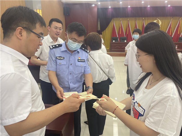 普法宣讲活动结束后,文法学院师生为参会的社区居民提供了义务法律咨询,并与万柏林区政协委员、孝义市委政法委工作人员共同为干部群众发放《民法典》《民事诉讼法》《刑法》《刑事诉讼法》等法律书籍200余册。