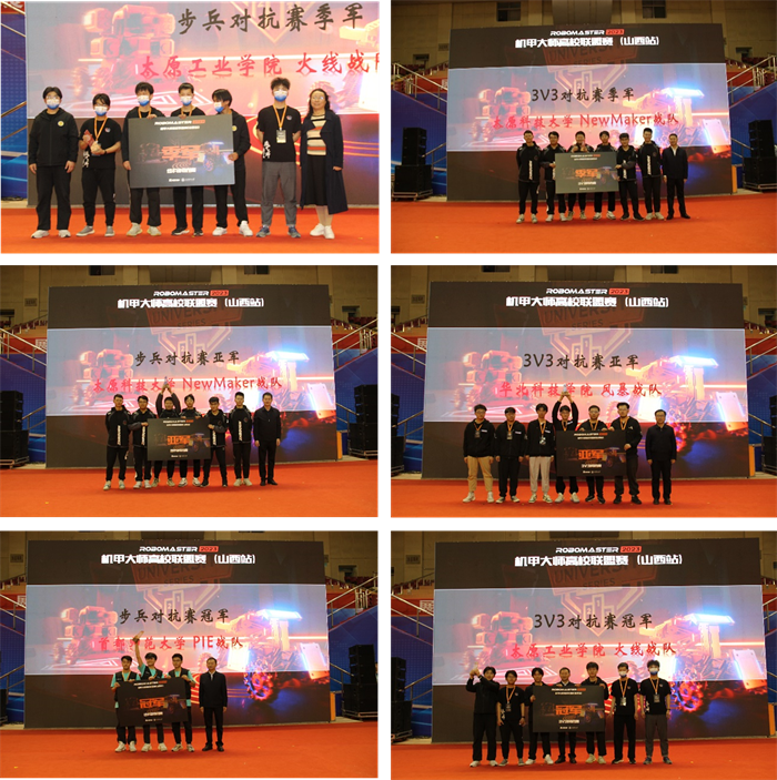 经过小组循环赛、八进四比赛、半决赛、季军争夺战、冠军争夺战,最终来自首都师范大学的PIE战队获得步兵对抗赛冠军,来自太原工业学院的火线战队获得3V3对抗赛冠军。在颁奖仪式上,嘉宾分别为步兵对抗赛与3V3对抗赛的冠亚季军队伍颁奖。随后,RoboMaster赛事高级运营经理郑敏为组织团队代表颁发优秀合作单位奖。