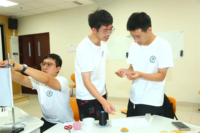 为了有效提高团体赛比赛成绩,我校力学学科制定了周密的备赛方案,在暑假开始之前,综合考虑个人赛成绩和实践动手能力,选拔了9位队员组成了参加两个团体赛的参赛队伍,分别是2021级工程力学专业学生李星毅、邢天澍,2021级飞行器设计与工程专业学生徐才棋、邹杰、陈俊杰、王莉、朱太郎、李杨、刘凯。7月下旬,9名参赛队员不惧酷暑,全部提前返校,在力学国家级实验教学示范中心开始了为期三周的集中训练。在指导教师刘鹏副教授的指导下,按照由易到难的顺序,通过方案讨论、技能练习、模拟比赛、分组对战等方式积极备战,在较短时间内迅速提高了竞技能力。