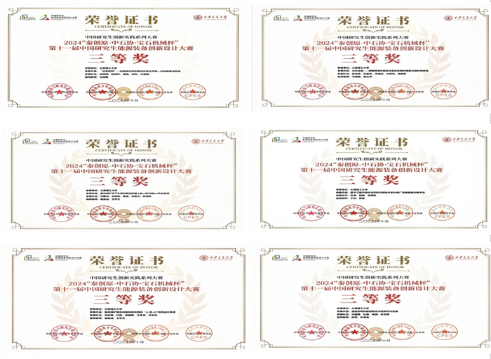 10月18日至20日,由教育部学位管理与研究生教育司指导,中国学位与研究生教育学会、中国科协青少年科技中心、中共西安市委组织部(市委人才办)主办的“秦创原-中石协·宝石机械杯”第十一届中国研究生能源装备创新设计大赛全国总决赛在西安交通大学圆满结束。我校6支队伍参加总决赛,与来自浙江大学、国防科技大学、西安交通大学、西北工业大学等高校的参赛队伍同台竞技,最终斩获六项全国三等奖,同时,学校被评为大赛优秀组织单位。