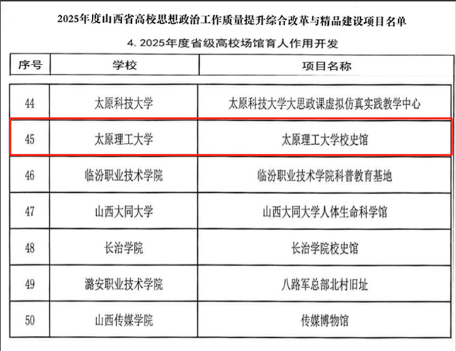 近日,山西省教育厅公布了2025年度山西省高校思想政治工作质量提升综合改革与精品建设项目立项结果。经过学校推荐、材料审核、专家评审、结果公示等多个环节的角逐,我校党委宣传部、学生工作部(研究生工作部,人民武装部)组织申报的16个项目入选2025年度山西省高校思想政治工作质量提升综合改革与精品建设项目。