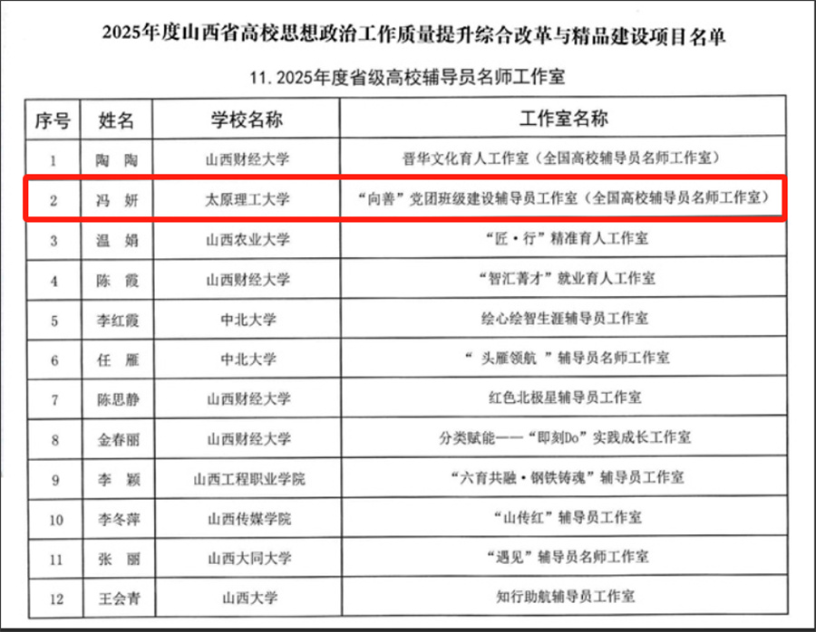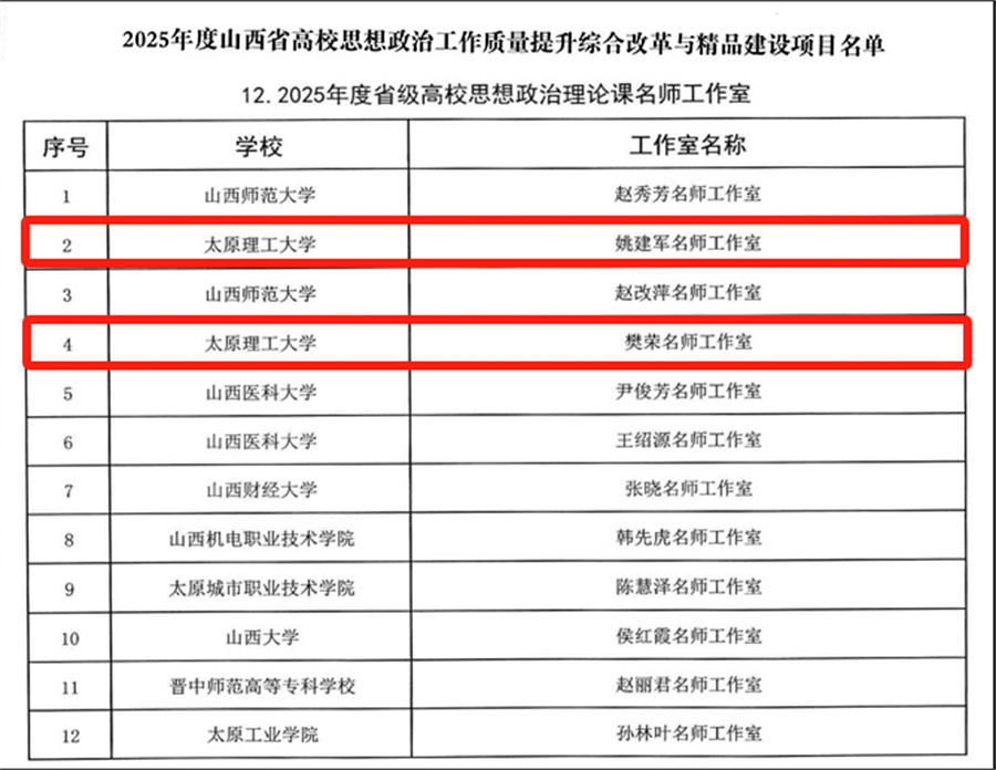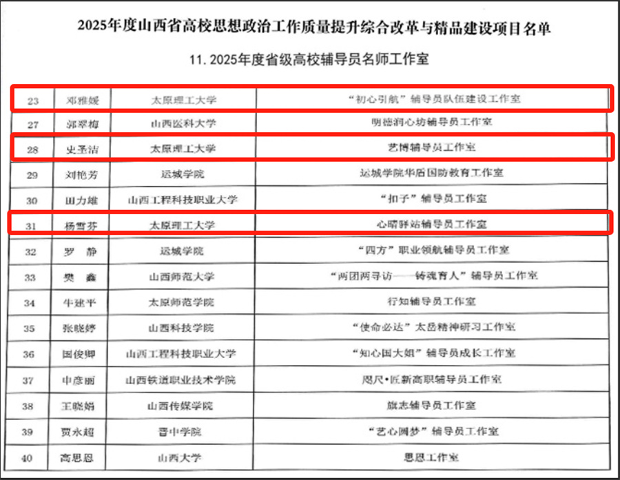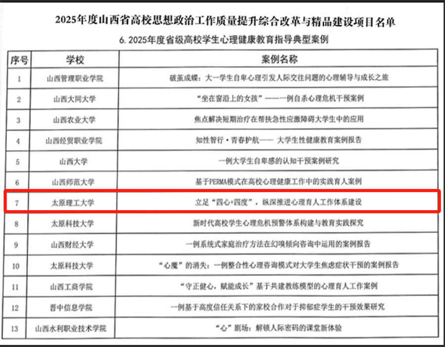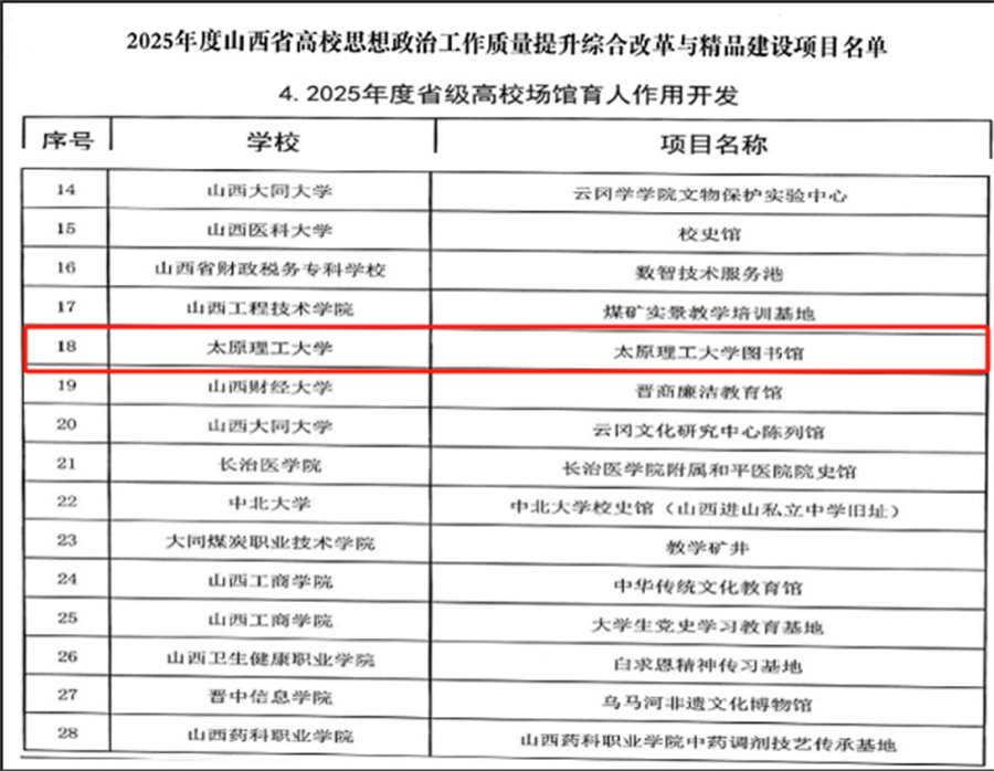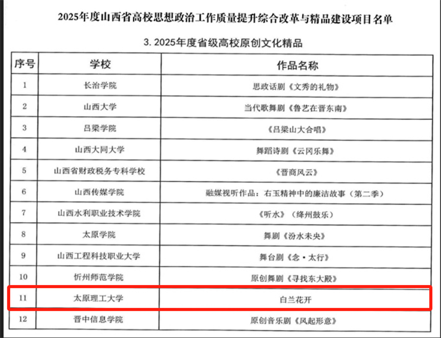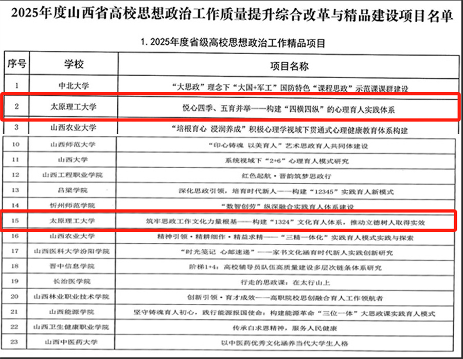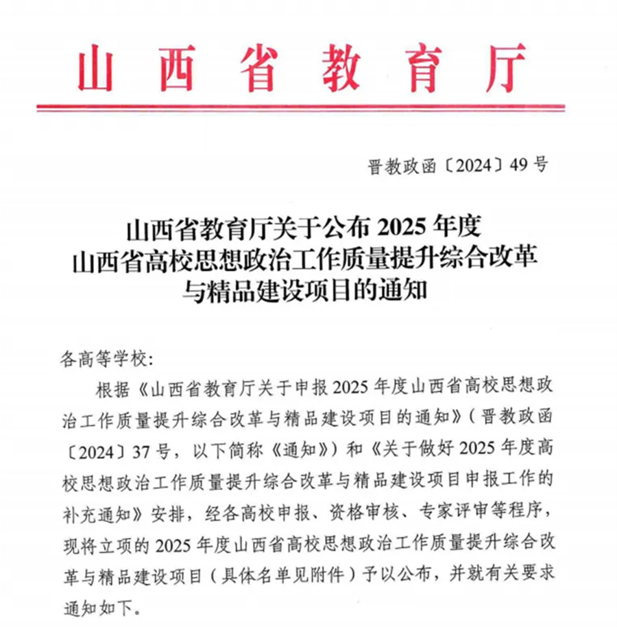 喜报!我校16个项目入选2025年度山西省高校思想政治工作质量提升综合改革与精品建设项目