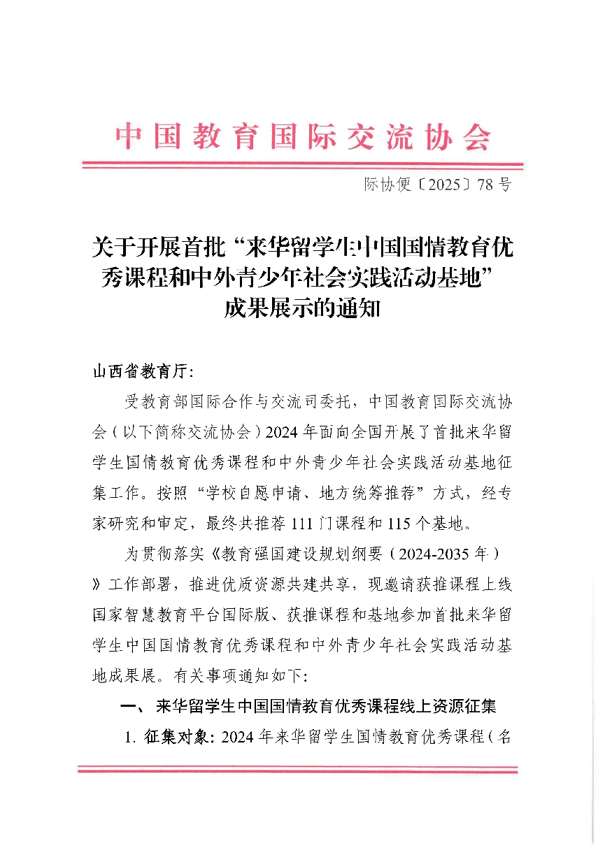 此次征集工作严格遵循“学校自愿申请、地方统筹推荐”的规范流程,经专家的严谨研究与细致审定,全国共有111门课程和115个实践基地入选,为提升来华留学生的国情教育水平提供了坚实保障。