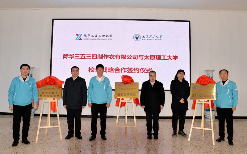 2月6日,我校轻纺工程学院与际华三五三四制衣有限公司签署校企战略合作协议并举行 “校企合作基地”“研究生联合培养实践基地”“本科生校外实习基地” 挂牌仪式。签约及挂牌仪式在际华三五三四制衣有限公司会议室举行。际华三五三四制衣有限公司党委书记兼执行董事郑海涛、党委副书记兼总经理赵志坚、纪委书记阴华,轻纺工程学院党委书记卢建军、院长王华及双方相关负责人参加仪式。仪式由阴华主持。