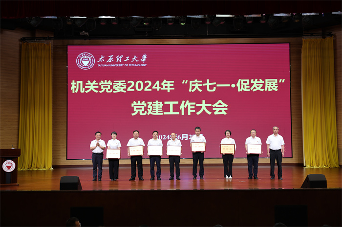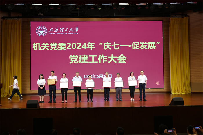 会议视频展示了14个优秀党建品牌创建活动。与会领导为组织部党支部、宣传部党支部、人事处党支部、审计处党支部、创新创业学院党支部、校工会党支部、招标采购中心党支部7个党支部颁发了“先进基层党组织”奖牌,为驻校纪检监察组、学生工作部、人才工作办公室、发展规划处、财务部、研究生院、校园规划与建设处、校团委8个部门颁发了“十型”机关创建“标兵单位”奖牌,为纪检监察党支部创建的“润廉清锋”、学生处党支部创建的“同心筑梦”、保卫部党支部创建的“‘保’你平安 ‘卫’爱护航”、科研院党支部创建的“三彩”、国有资产管理处党支部创建的“护资先锋”、校园规划建设处党支部创建的“学堂工匠”、校团委党支部创建的“青年之+”等7个品牌颁发“优秀党建品牌”奖牌,为魏铁柱等38名优秀共产党员、高颖等17名优秀党务工作者、刘诗琦等12名“十型”机关创建先进个人颁发了荣誉证书。