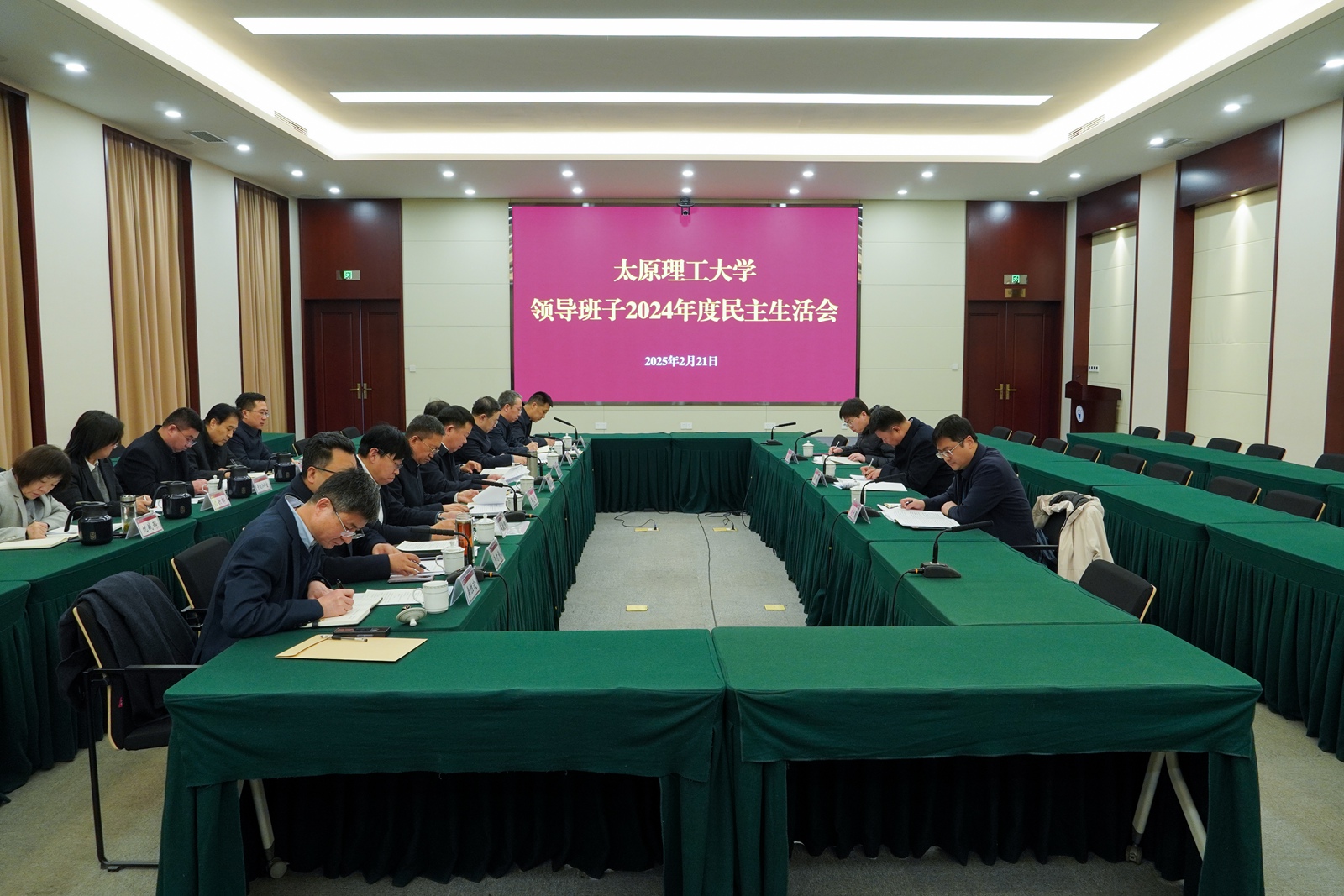 2月21日,校党委领导班子在迎西校区会议中心一层会议室召开2024年度民主生活会,围绕“深入学习贯彻习近平新时代中国特色社会主义思想,巩固深化党纪学习教育成果,综合发挥党的纪律教育约束、保障激励作用,为进一步全面深化改革、推进中国式现代化提供坚强纪律保证”主题,紧密联系思想和工作实际,认真检视查摆问题,深挖问题根源,深刻剖析反面典型案例,严肃开展批评与自我批评,明确整改方向。省纪委监委第八监督检查室副主任张奎岭,省教育厅(教育工委)安稳处(应急办)处长(主任)刘靖灏,省纪委监委第八监督检查室干部周扬凯一行莅会指导。校党委书记沈兴全主持会议并作总结讲话,校党委全体常委参加会议,副校长桑胜波,党政办公室、驻校纪检监察组、组织部、宣传部、统战部相关负责人列席会议。