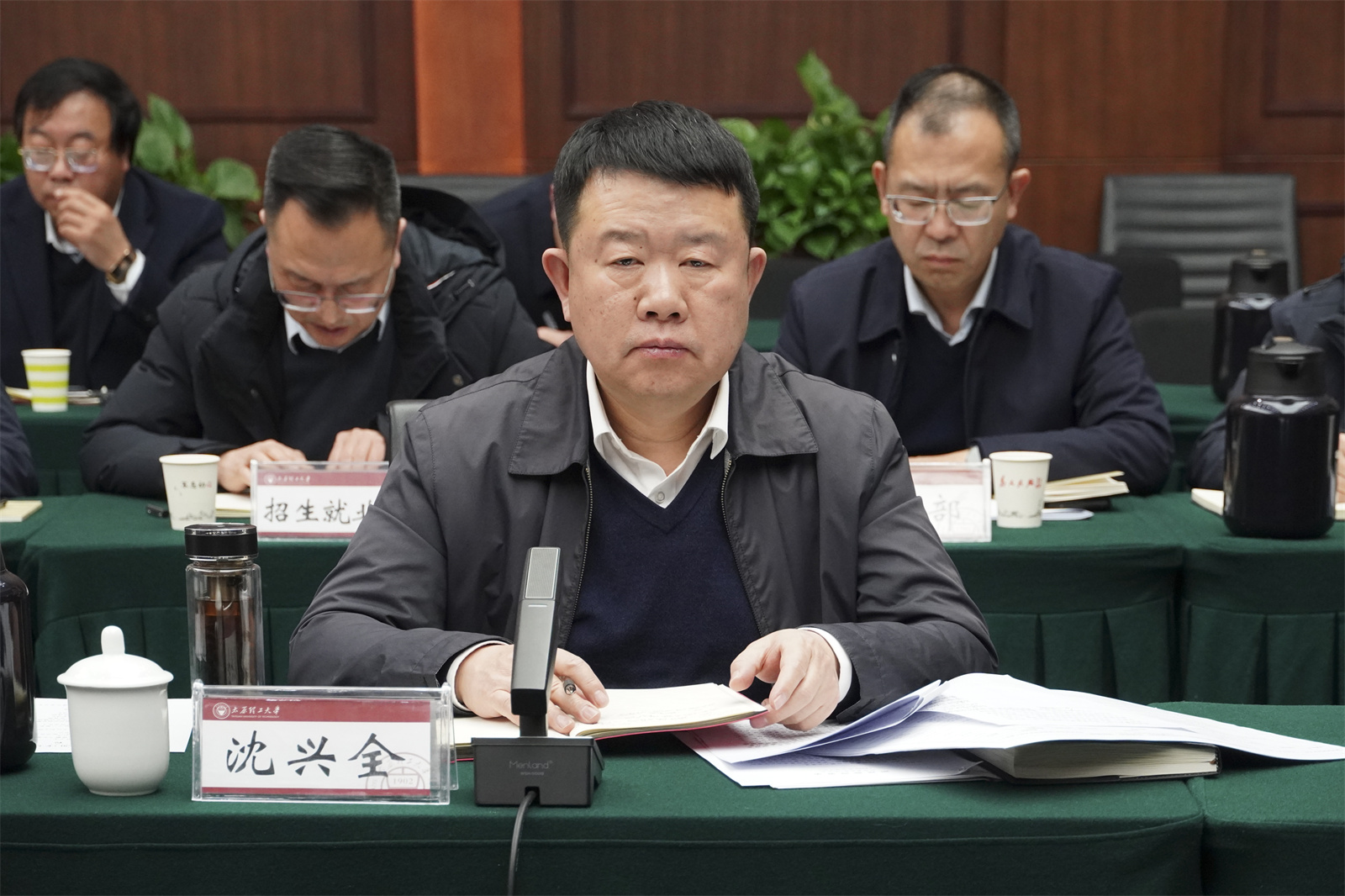 3月7日下午,校党委在明向校区行政楼鹏飞会堂召开理论学习中心组(扩大)学习会议,专题学习中央和省委近期重要指示重要文件精神。校党委理论学习中心组成员、党政职能部门负责人、基层党委书记参加会议,校党委书记沈兴全主持会议。
