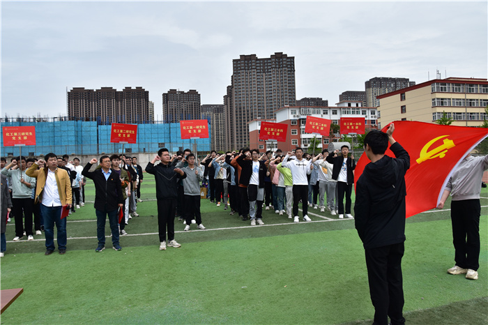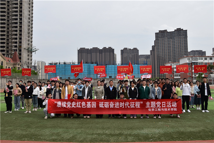 为深入开展学习贯彻习近平新时代中国特色社会主义思想主题教育,推动青年党员在主题教育中感悟思想伟力、凝聚奋进力量。5月10日上午,化学工程与技术学院在迎西校区运动场举办了“赓续党史红色基因 砥砺奋进时代征程”主题党日活动。学院党委书记张琤出席,全体学生党支部书记及学生党员共百余人参与了本次活动,活动由学院学工办负责老师主持。