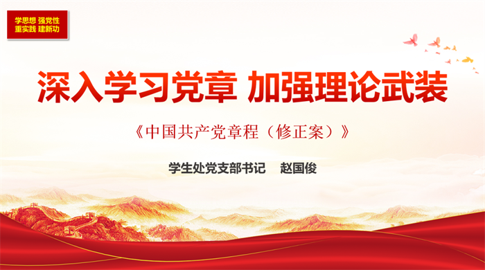赵国俊结合“学思想、强党性、重实践、建新功”的主题教育总体要求及自身理论学习收获,重点围绕“党章的概述、党章的发展历程、党的二十大对党章作出的重要修订”三方面内容进行了全面生动地讲解。他指出,党章是管党治党的总章程、总规矩,是中国共产党最根本的党内法规,对党的性质和宗旨、路线和纲领、指导思想和奋斗目标、组织原则和组织机构、党员义务和权利以及党的纪律等作出根本规定。党的二十大对党章作出重要修订有利于坚持和加强党中央集中统一领导、坚持不懈用习近平新时代中国特色社会主义思想凝心铸魂,有利于增强党组织政治功能和组织功能、坚持以严的基调强化正风肃纪、坚定不移推进全面从严治党。