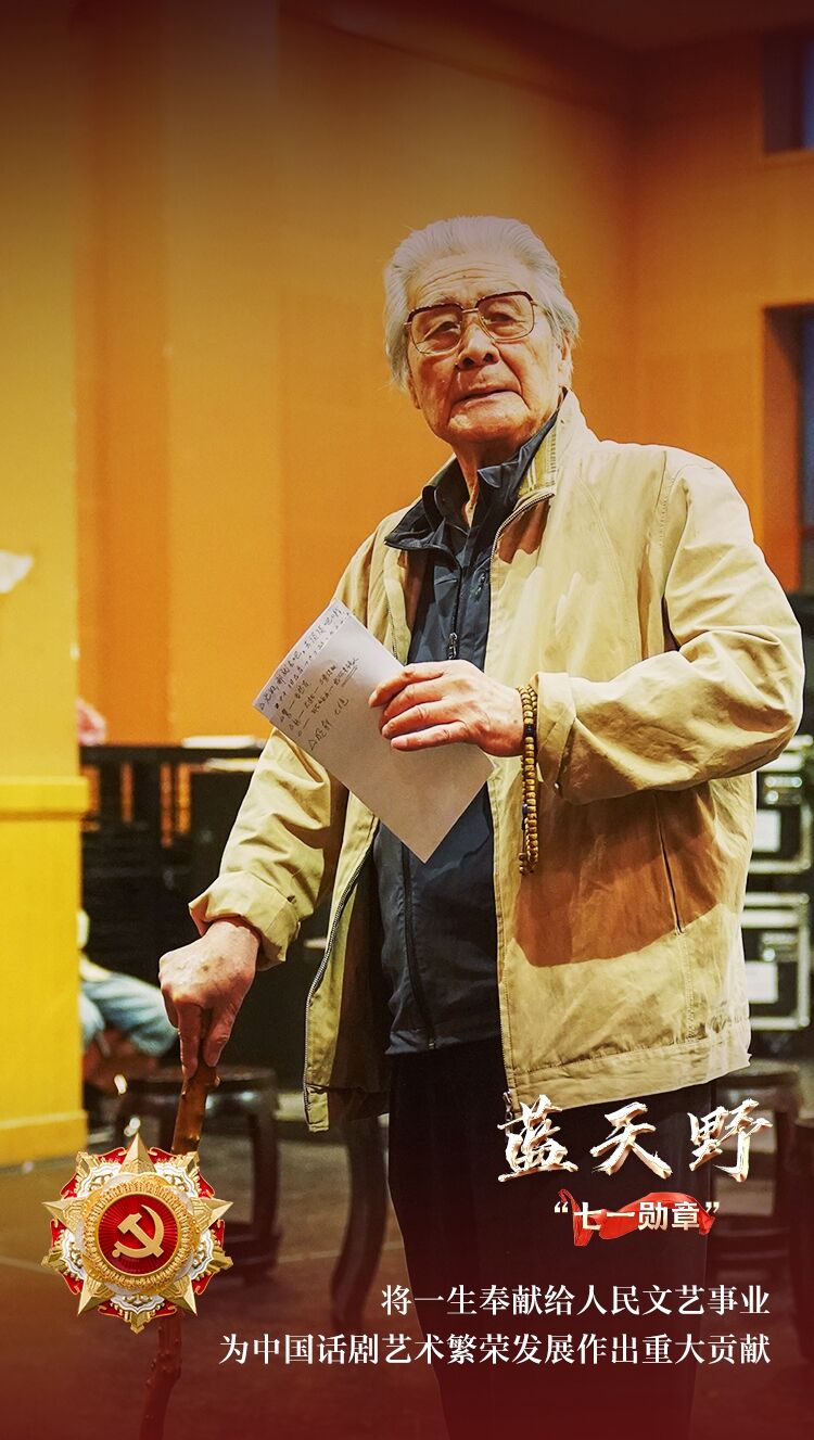 他是北京人民艺术剧院原演员、导演蓝天野。6月29日,94岁高龄、满头银发的他,作为戏剧界唯一代表荣获党内最高荣誉——“七一勋章”。