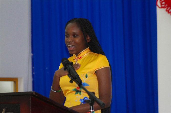 本次比赛以“天下一家”为主题,吸引了近百名牙买加中文学子齐聚一堂,共同展示中文学习的成果与中华文化的魅力。比赛分为主题演讲、知识问答和才艺表演三个环节。在主题演讲中,选手们围绕“天下一家”展开精彩论述。1号选手Tiffany Williams以《音乐无界,人心无疆》为题,巧妙结合牙买加雷鬼音乐与中国文化的共通之处;6号选手Marie-Ann Browne则通过《跨越加勒比与南海的心灵共鸣》,生动诠释了文化交融的深远意义。