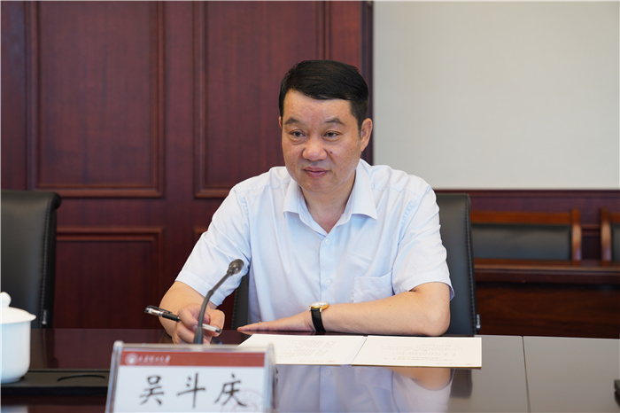 吴斗庆对屈忠义一行来校调研表示欢迎,介绍了学校的办学历史、办学特色、学科建设、师资队伍、科技创新、人才培养、招生就业、综合改革、未来发展目标和方向等情况。希望两校间进一步加强交流互动,在人才培养、科学研究等众多领域广泛开展合作,携手共进。