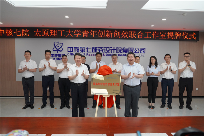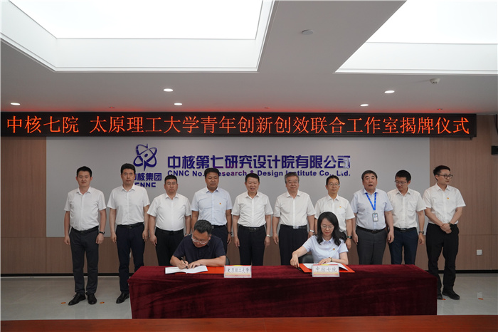 5月31日,我校与中核第七研究设计院有限公司共同建设的“青年创新创效联合工作室”揭牌仪式在中核七院学术交流中心举行。双方正式签署共建协议,并为联合工作室揭牌。共青团山西省委副书记吴兴;中核集团副总工程师、中国原子能党委书记、董事长薛小刚,中国原子能党委副书记罗小未;校党委书记沈兴全,校党委常委、副校长李灯熬;中核七院党委书记、董事长李江颖,党委委员、纪委书记张子秀出席仪式。团省委、中国原子能、中核七院以及我校相关部门(单位)负责人参加了仪式。
