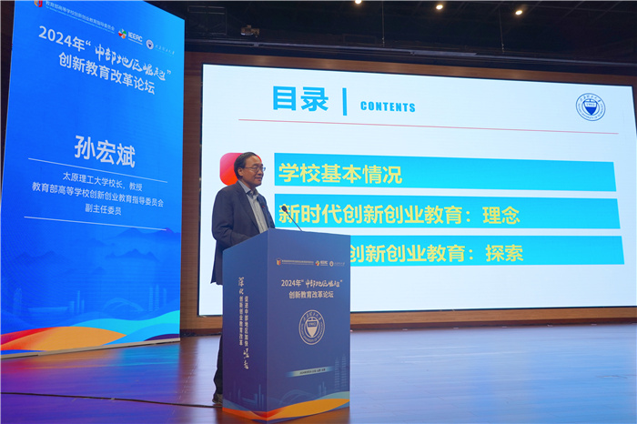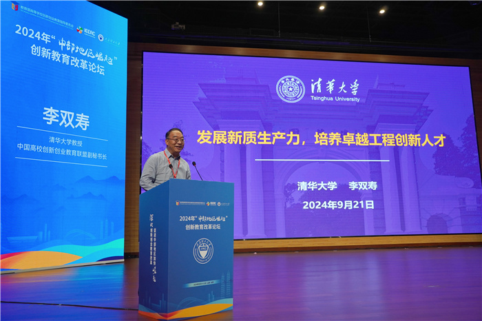 李双寿、贺星岳、王孝华、孙宏斌分别围绕《发展新质生产力 培养卓越工程创新人才》《对职业教育基本属性的认识》《数字经济时代的科教创新》《新时代创新创业教育的理念与探索》作“中部地区崛起”创新教育改革论坛大会报告。
