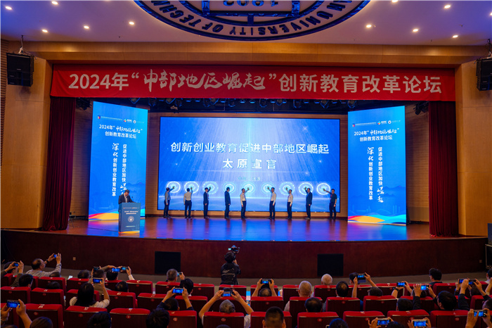 开幕式上,启动了“2015—2025中国高校创新创业教育改革十周年”学情调研,发布了《推动创新创业教育,支撑中部地区崛起——太原宣言》。宣言称,中部地区作为中华文化的发源地、推进新一轮工业化和城镇化的重点区域,以及内需增长极具潜力的区域,其崛起对于优化全国经济布局、促进区域协调和高质量发展具有重要意义。教育部高等学校创新创业教育指导委员会、中国高校创新创业教育联盟、中部六省高校牵头,与全国教育界同仁一起,共同构建“中部地区创新创业教育协同体系”,涵盖从创新意识激发、能力提升、成果培育、资源对接到落地转化的全过程,构建创新生态,提升培养效能。要秉持“教育强国、科技赋能、人才引领”的核心理念,实施“共建共享优质教育资源”“共建科产联动创新合作平台”“共建区域科创项目孵育平台”三大行动,提出“全国高校积极参与、激发文化创新创造活力、政产学研深度融合、创新人才培养模式、加速科技成果转化、优化区域教育资源配置、构建开放合作新格局”等七大行动倡议,以教育为引领,以科技为驱动,以人才为支撑,共同开创中部地区高等教育创新发展的新篇章,为实现中华民族伟大复兴的中国梦贡献力量。