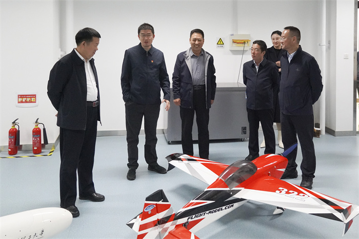 在校期间,刘锋一行还参观了我校校史馆、纺织行业废旧涤棉纺织品清洁再生重点实验室、微纳传感与人工智能感知山西省重点实验室、航空航天学院模拟飞行实验室等地。