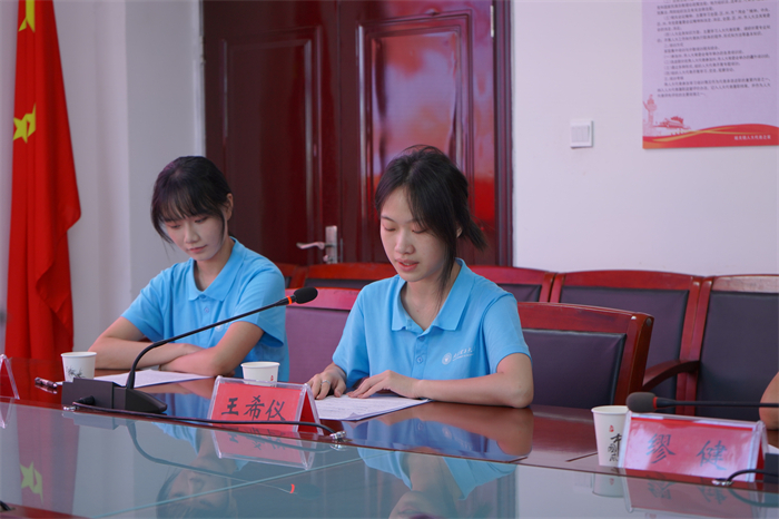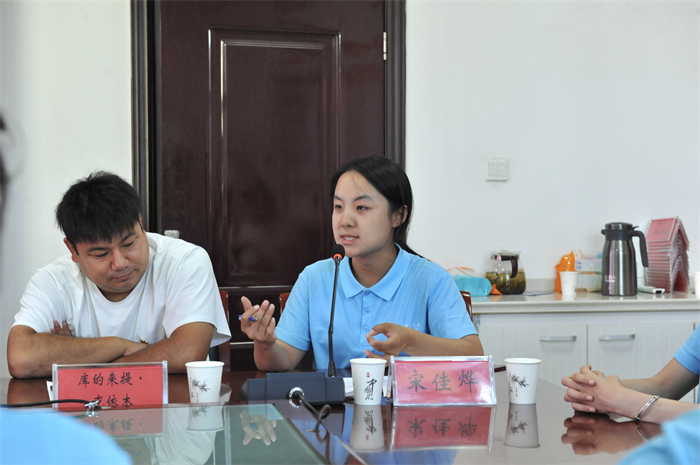 邱文静、亢伟介绍了此次社会实践的工作安排及对接保障情况。实践队负责同学宋佳烨汇报了实践队的工作成果。实践队员代表王希仪、罗洁妤结合实际工作分享了实践过程中的收获与感悟。