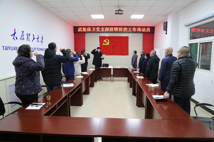会议期间,保卫部(处)党员代表还进行了疫情防控誓师动员,组建了党员先锋队。大家表示,一定要充分发挥党组织的战斗堡垒作用,让党旗高高飘扬在疫情防控斗争第一线。会议还决定与校医院党支部建立疫情联防联控队伍,以期将疫情防控工作做得更实、更细、更好。