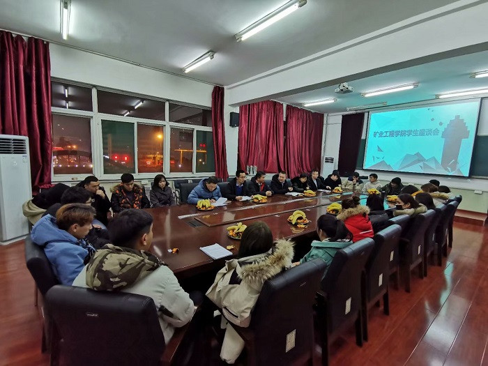 1月3日晚,矿业工程学院“红石榴”工作坊在致明楼318会议室举行新年民族学生座谈会。校学工部资助中心主任张晓梅、新疆内派教师阿力木·买买提、综合办公室杨雷、资助中心库尔班江、院学工办主任刘宏伟和民族学生参加了座谈会,会议由院党委副书记巴大志主持。