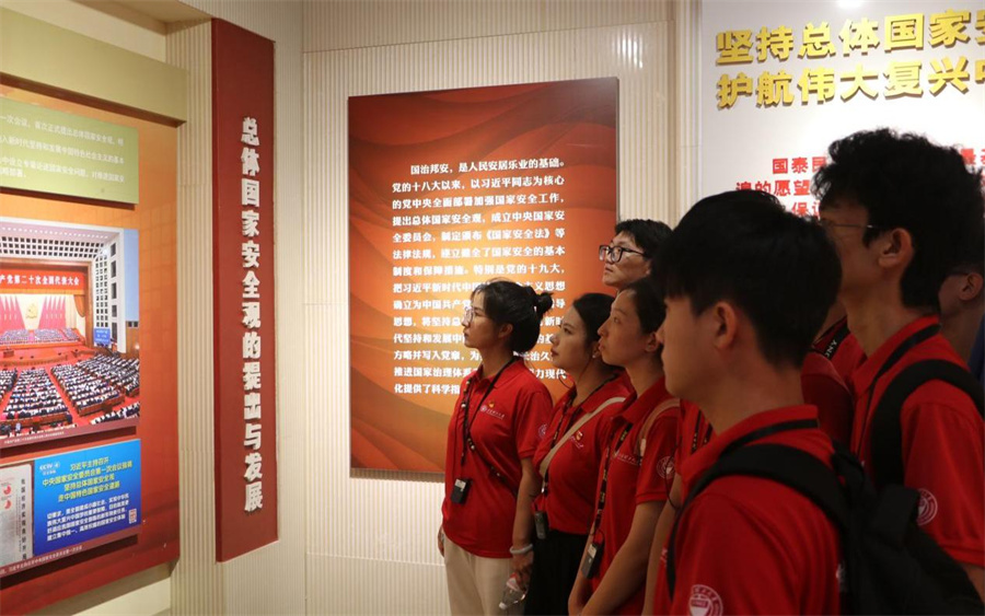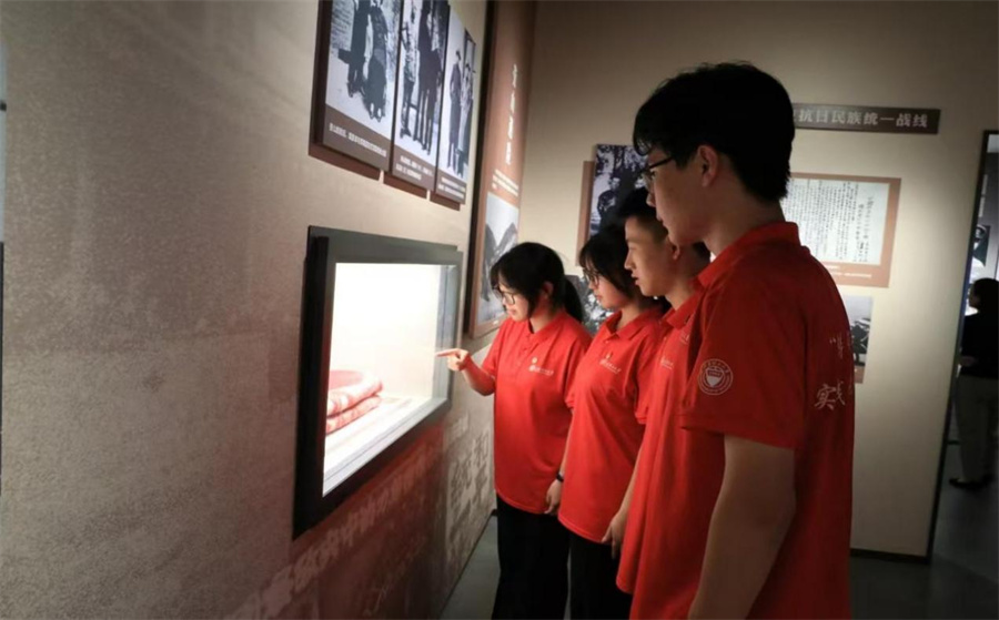 河北实践队追寻着中国共产党的伟大精神足迹踏遍燕赵大地的红色沃土。石家庄解放纪念馆里革命先烈的英雄事迹、西柏坡纪念馆的红色历史、中共中央旧址的简朴环境,让实践队员们深刻感悟到“老区精神”和“西柏坡精神”的时代伟力,以及中国革命胜利和幸福生活的来之不易;在白洋淀红色教育基地雁翎队纪念馆里实践队员们聆听了精彩的抗日故事,在嘎子村看到了当年抗战生活场景的生动再现;冉庄地道战纪念馆和地道战遗址的沉浸式参观体验,让队员们惊叹于中国军民英勇抗战的智慧与气魄;河北博物院的抗日战争展厅里的历史印记,诉说着那段艰苦卓绝的伟大岁月;狼牙山文化博物馆的学习让队员们重温了五勇士的英雄壮举,在“狼牙山精神”的引领下,队员们重走了那段洒满英雄热血和足迹的崎岖山路。革命纪念场馆中的一段段故事、一幅幅图片、一件件实物、一个个场景,无一不彰显出“天下兴亡、匹夫有责”“视死如归、宁死不屈”“不畏强暴、血战到底”“百折不挠、坚忍不拔”的伟大“抗战精神”。白洋淀实地调研,让实践队员们全方位探寻了新时期的生态保护密码与红色基因的传承脉络;国家安全教育馆的参观学习,则坚定了队员们用青春力量守护国家安全的决心。