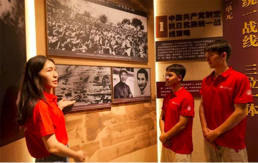 陕西实践队循着中国共产党在西北地区波澜壮阔的革命足迹,沉浸于不同场景的历史课堂。通过深入生动地实践体验学习,队员们系统追溯了伟大建党精神在革命时期的时代体现:在西安事变纪念馆里,一件件革命史料彰显的是民族存亡关头的“天下兴亡、匹夫有责”的伟大“抗战精神”;杨家岭、枣园革命旧址的窑洞灯光里,映照着“自力更生、艰苦奋斗”的“延安精神”;南泥湾的田野,则是“自己动手、丰衣足食”的“南泥湾精神”的鲜活实践地;照金纪念馆里珍贵的文献物品,镌刻出的是陕甘边革命根据地军民坚定的理想信念和斗争意志的“照金精神”;梁家河知青旧居,诉说着知识青年扎根基层、与人民群众同甘共苦的为民初心与实干精神;西安八路军西安办事处纪念馆和革命公园的参观学习进一步丰富了实践队员们的历史记忆;西迁博物馆则生动诠释了“胸怀大局、无私奉献、弘扬传统、艰苦创业”的“西迁精神”的内涵精髓。
