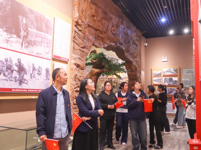 一行人还参观了纪念馆,闫新从土地革命、抗日战争、解放战争三个时期为大家讲述革命时期先烈们的不畏牺牲、艰苦奋斗的英雄事迹。