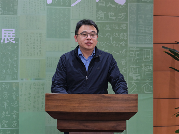 杨晓伟宣布展览开幕并强调,图书馆是学校文化建设的重要基地,要强化与各学院、学科联合,深入挖掘我校的学术成就与精神内核,践行文理交融、以美育人的理念,充分发挥空间、资源、知识创新优势,全面推进“三全育人”再上新台阶。