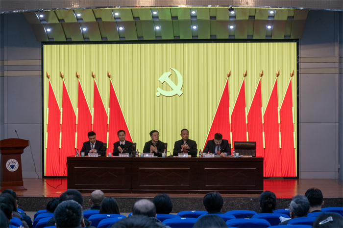 闫怡红同志代表学院党委作了题为《凝心聚力开新局 守正创新促发展 奋力谱写特色鲜明一流学院新篇章》的工作报告。报告从党建引领、人才培养、学科发展、师资队伍建设、服务地方经济等方面,全面回顾总结了学院近十年的工作和取得的成绩,实事求是地分析了学院面临的形势、存在的问题和不足,明确今后五年的目标和举措。