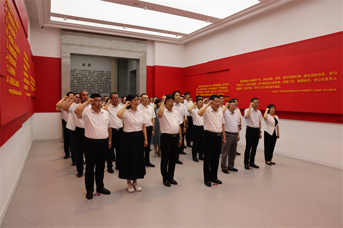 参观结束时,大家来到入党宣誓厅,在校党委书记沈兴全的带领下重温入党誓词,经受了一次深刻的党性教育和精神洗礼。
